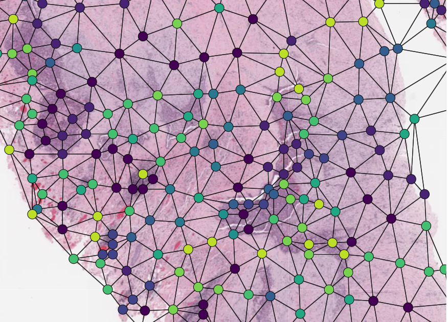 Graphs can also be overlaid. The display of nodes and edges can be toggled on/off independently in the right-hand panel of the interface (note, edges will be turned off by default; they can be made visible by toggling the ‘edges’ toggle in the UI). An example of a graph overlay is shown to the right. Graph overlays should be provided in a dictionary format with keys as described below, saved as a .json file.